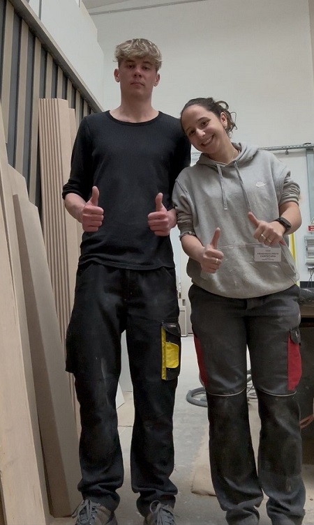 Během naší práce v rodinné společnosti Pedras & Sousa – Carpintaria e Móveis Lda, která se nachází v nedalekém Barcelosu, jsme se toho už spoustu naučili. Pomáháme svým mentorům, kteří se nám věnují a neváhají se s námi podělit o rady a zkušenosti, a se vším, co je potřeba. Konkrétně jsme např. seřizovali skříně, šuplíky a další typy nábytku, šroubovali, olepovali a připravovali materiál na řezání.