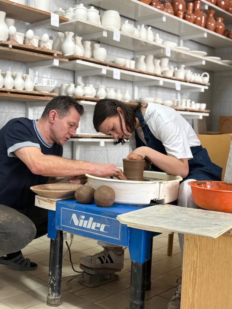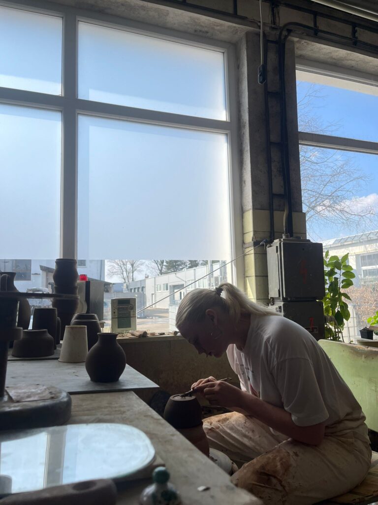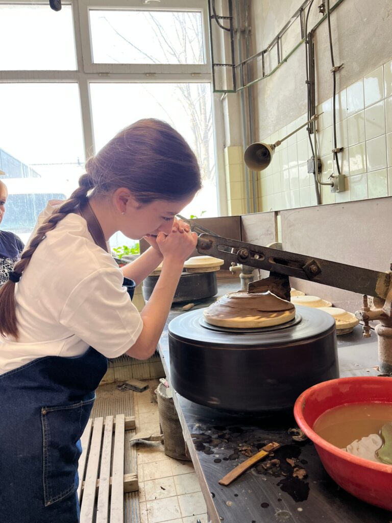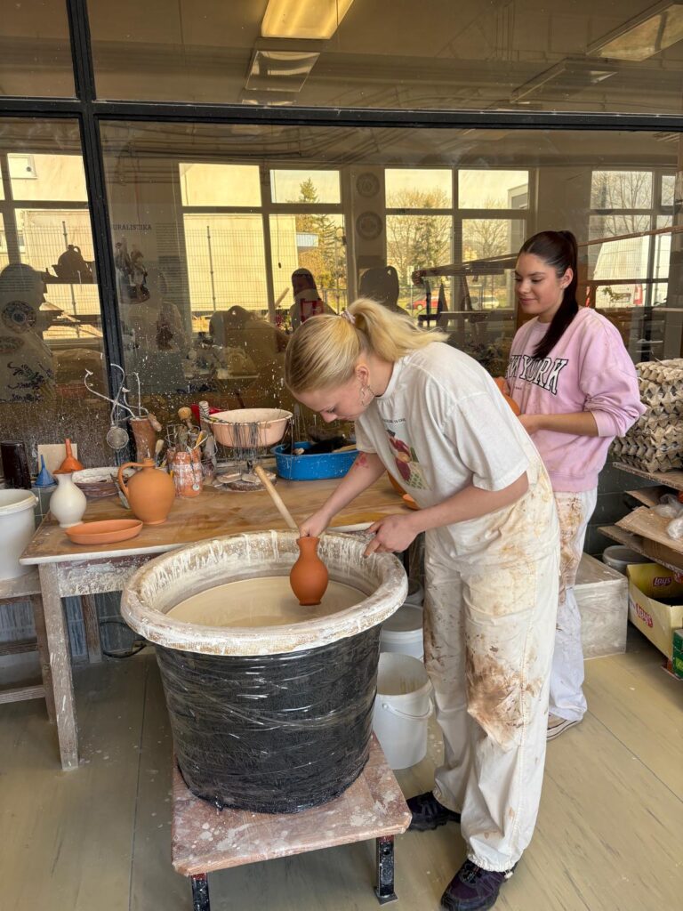 V pondělí jsme nastoupily na pracoviště, jako první nás provedli a pustili nám úvodní film, který nás inspiroval a navnadil na následující dva týdny. Následně jsme se rozdělily do dvou skupin, jedna skupina měla pana mistra točíře Olivera a druhá pana mistra točíře Roberta. První dva dny jsme strávily točením na hrnčířském kruhu, naučily jsme se spoustu nových úchopů a způsobů, jak točit lépe.